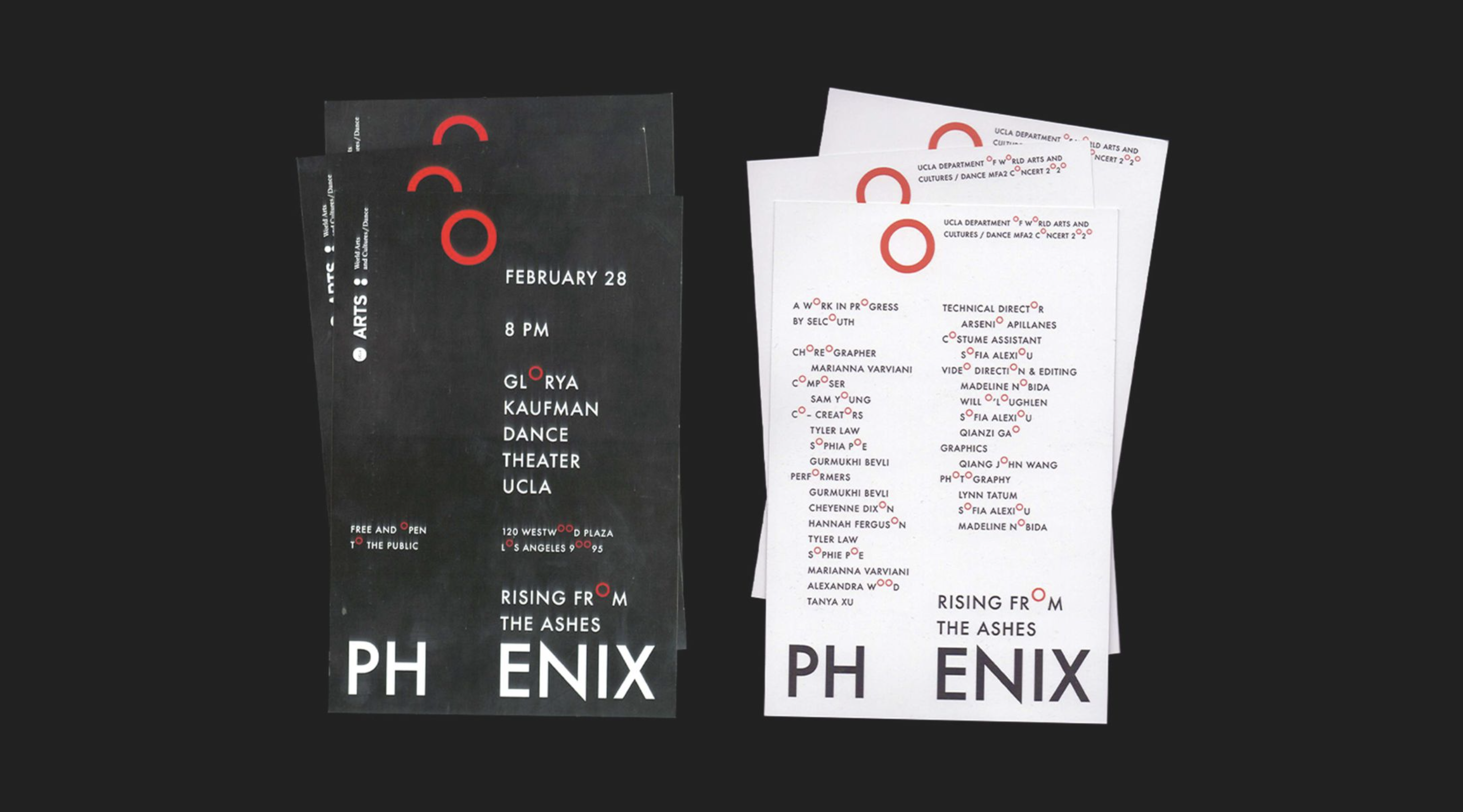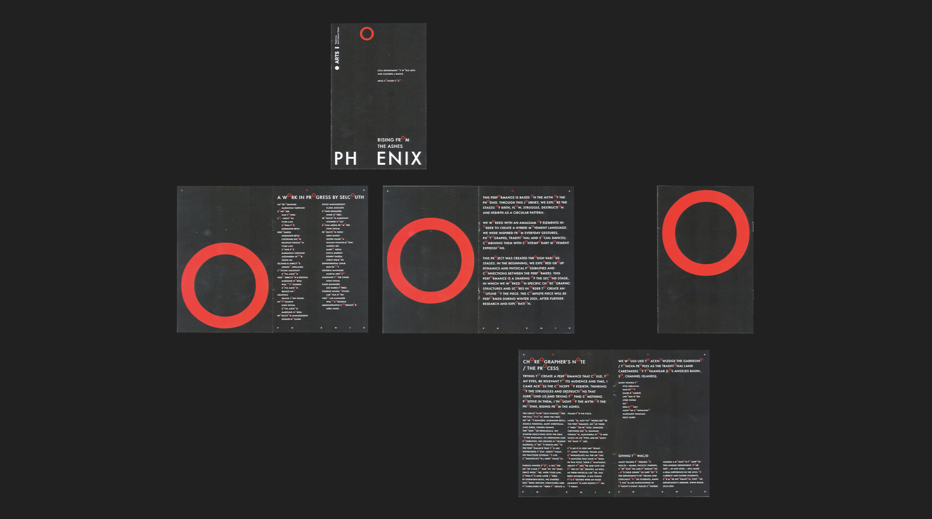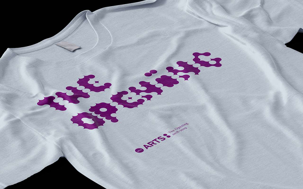 The identity for the event series centers around a set of typefaces derived from variations of a circular grid, building on top of the existing UCLA Arts identity, which features the colon as its logo.
