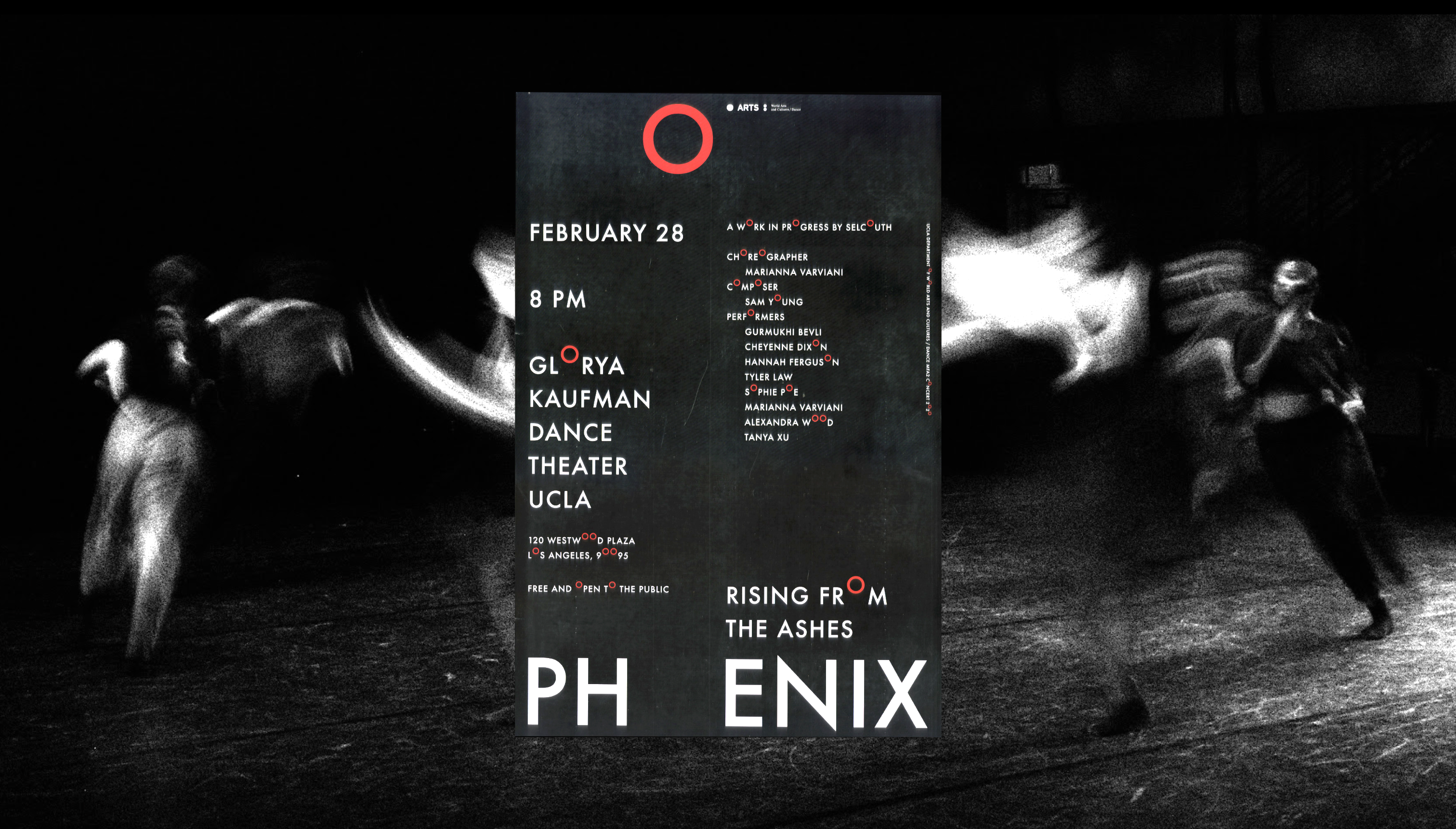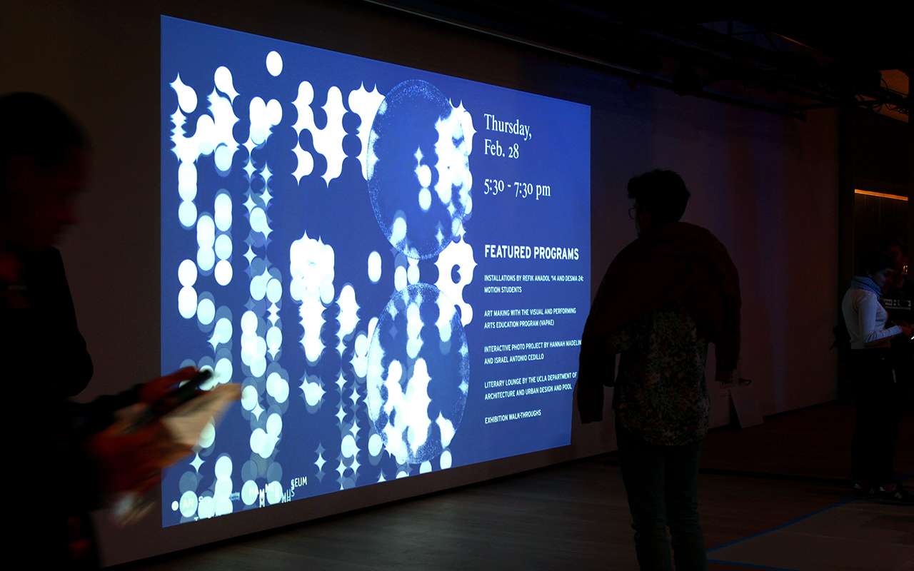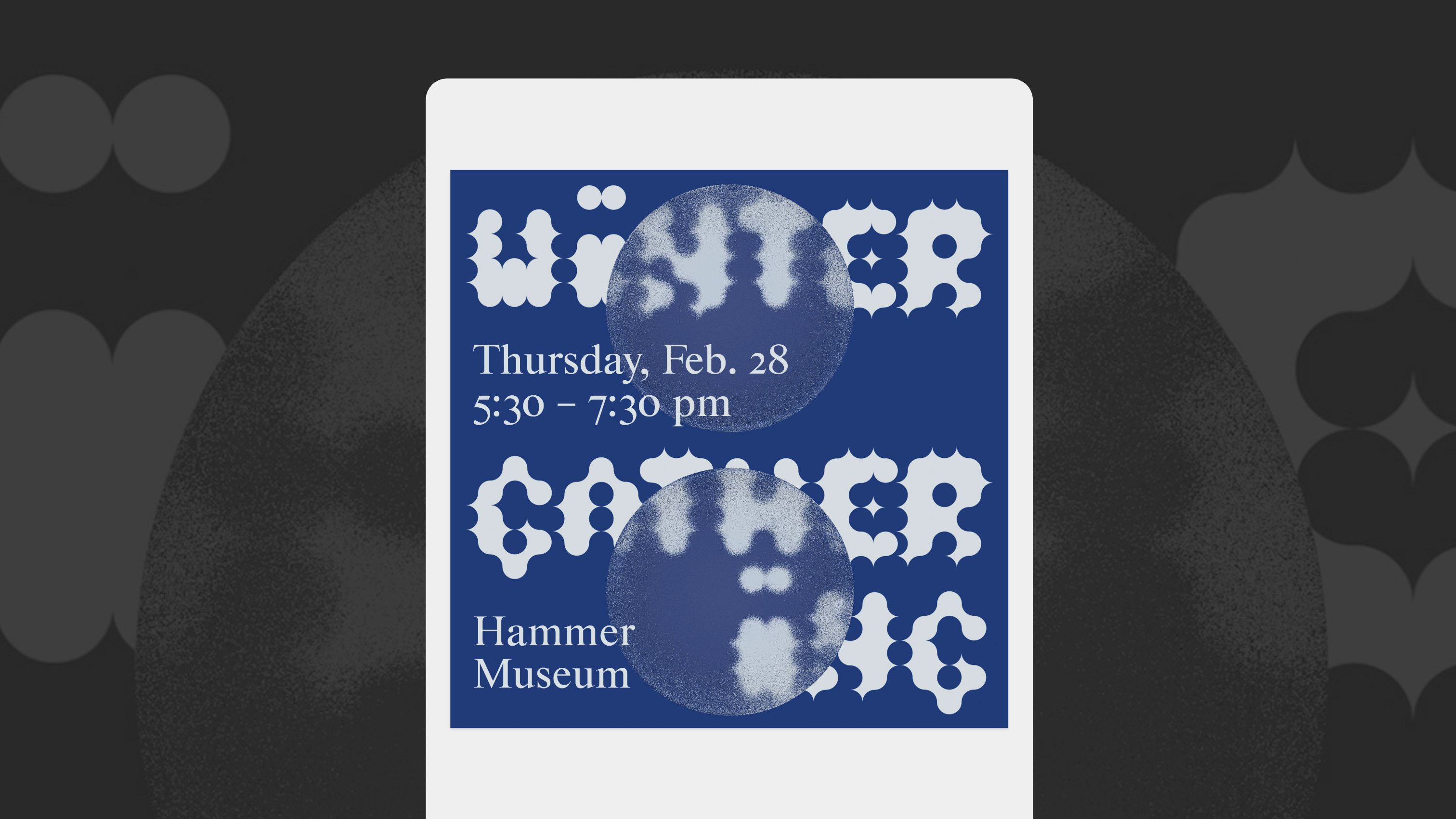 The identity for the event series centers around a set of typefaces derived from variations of a circular grid, building on top of the existing UCLA Arts identity, which features the colon as its logo.