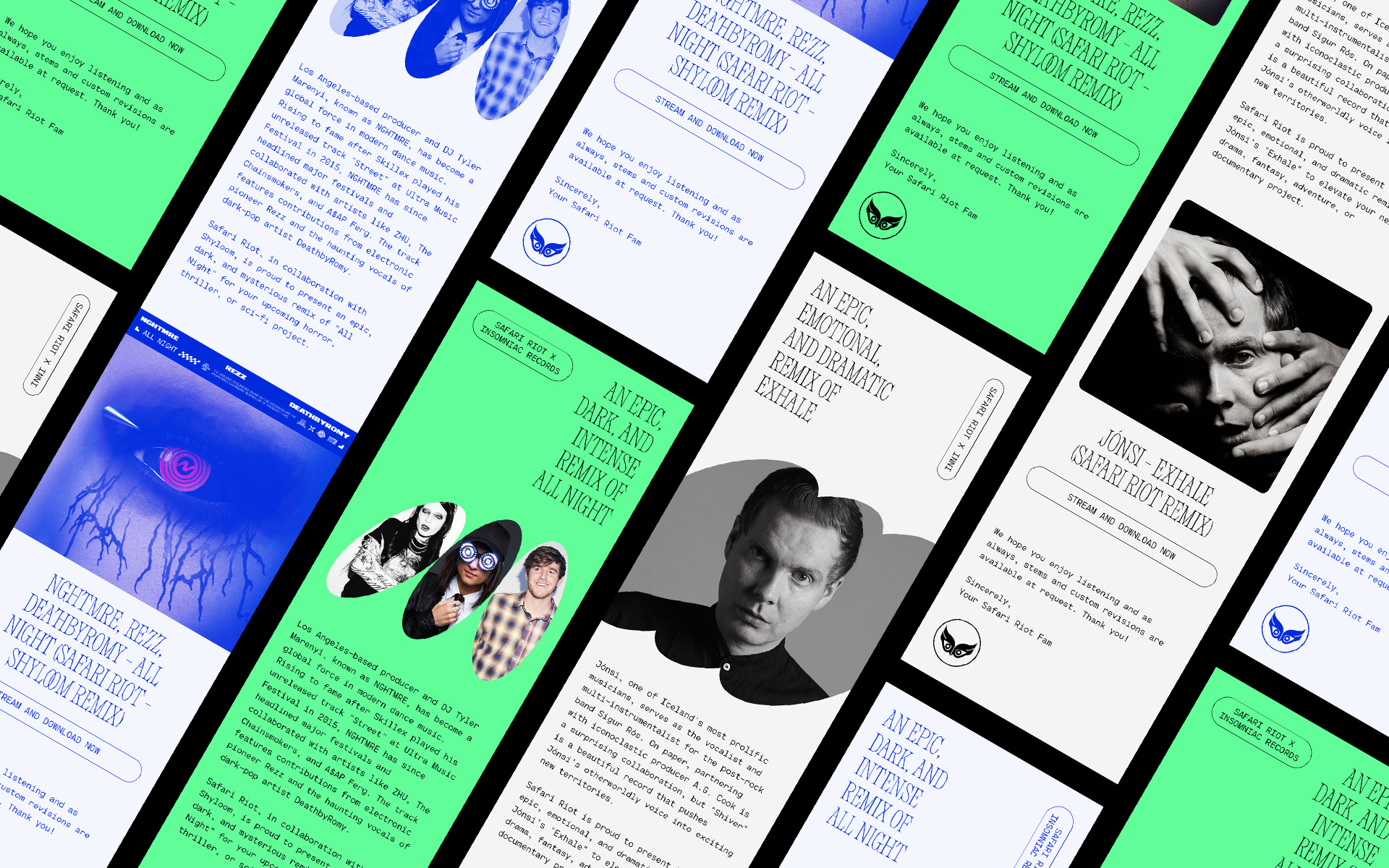 Identity and social design for Safari Riot, an artist development company based in Los Angeles.