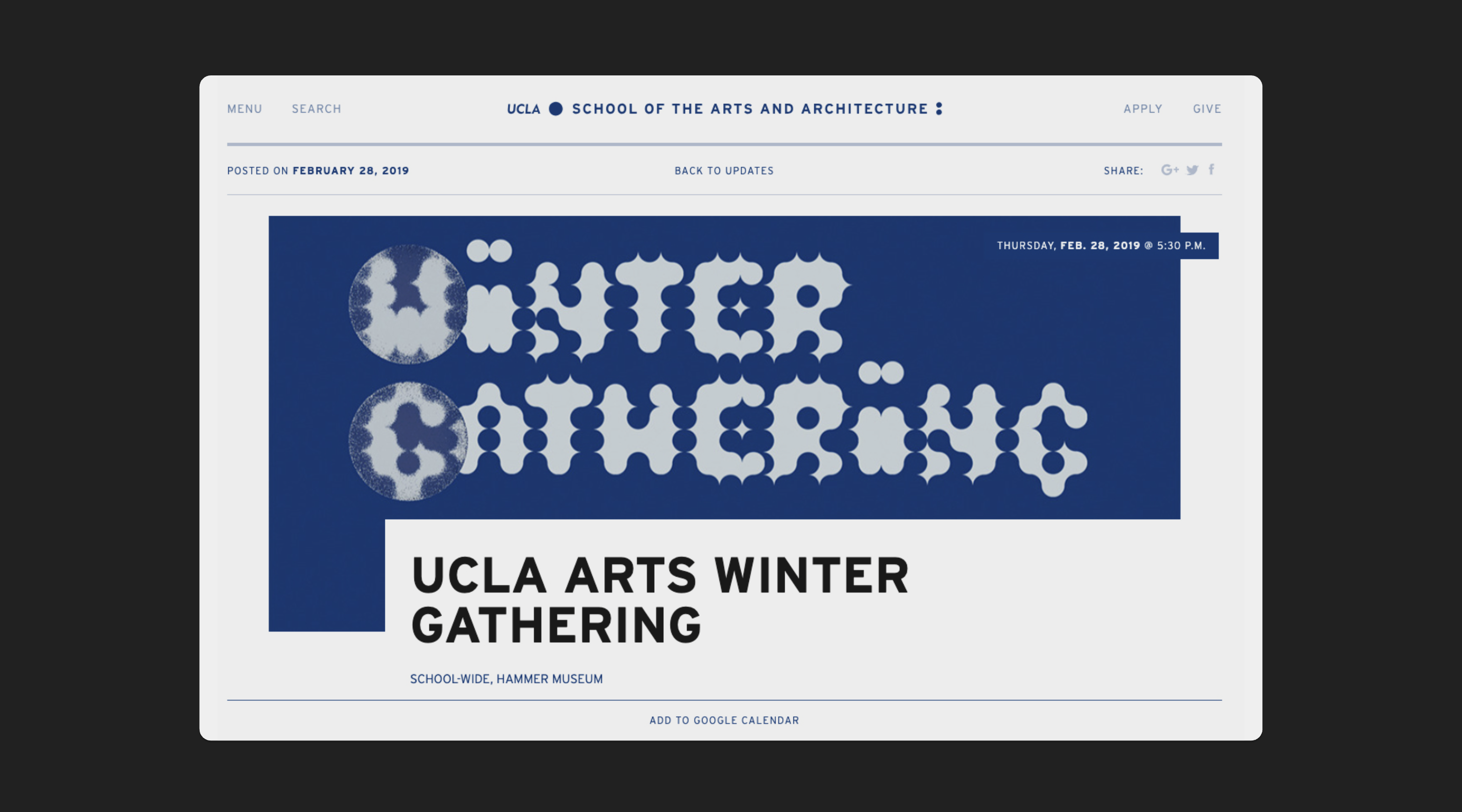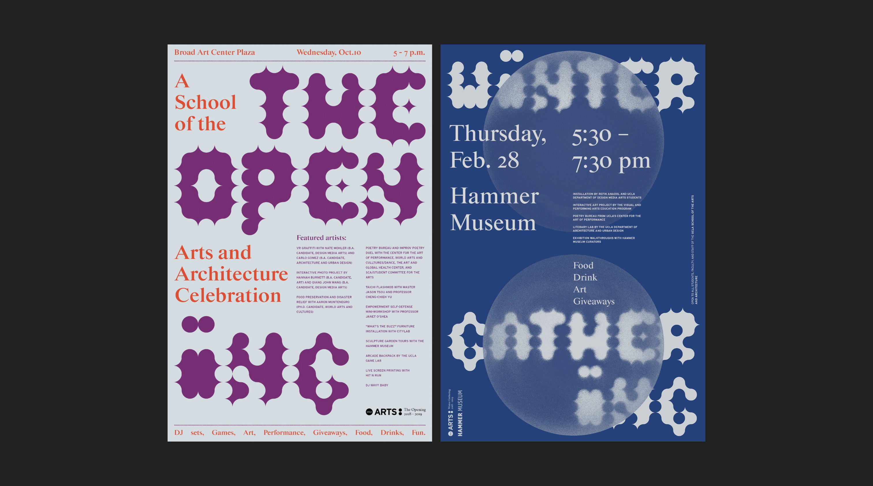 Identity for a series of quarterly celebrations at UCLA School of the Arts and Architecture.